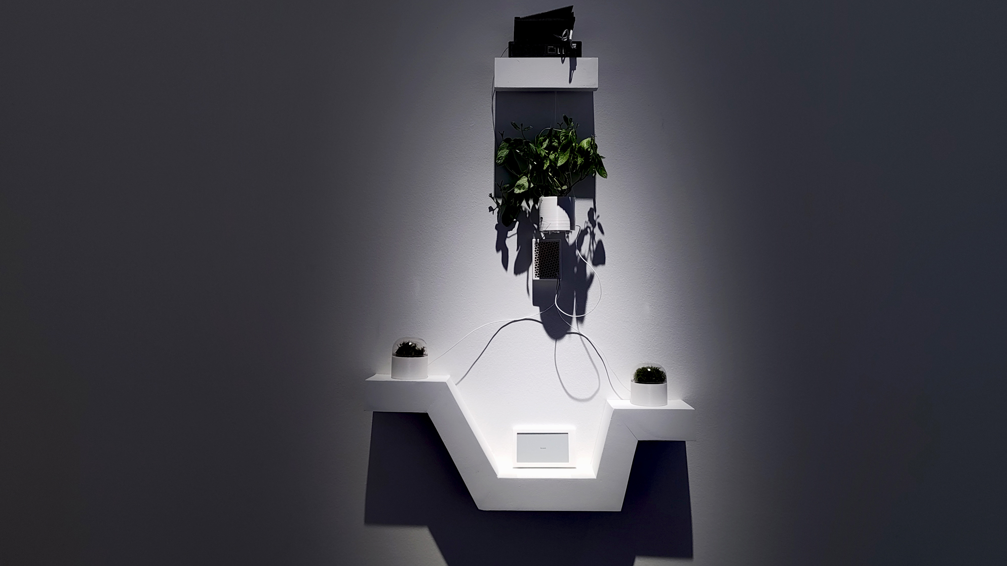 culture, all occupying a shared dimly lit space. Mycocene uses a juxtaposition of bio-art and electronic